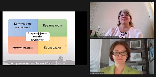 Опыт реализации программы в Новосибирской области, особенности реализации программ повышения квалификации для управленческих и педагогических команд показали в рамках дискуссионной площадки Наталья Николаевна Малахова (зав. кафедрой педагогики, воспитания и дополнительного образования НИПКиПРО, региональный куратор программы) и Лариса Викторовна Черникова (доцент кафедры педагогики, воспитания и дополнительного образования). Выступление было посвящено стереоэффектам онлайн-дидактики, которое представители региональной обучающей команды обобщили на основе двухлетнего опыта в программе.