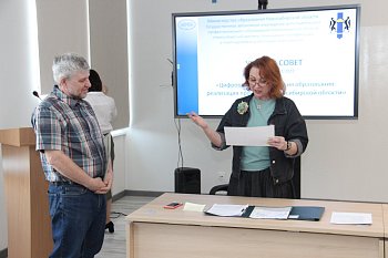 Начальник отдела информационно-аналитической и проектной деятельности О. А. Василенко представила направления деятельности отдела: создание электронных сервисов, осуществление сбора, обработки, хранения статистической, аналитической, социологической и иной информации по актуальным вопросам образования Новосибирской области.