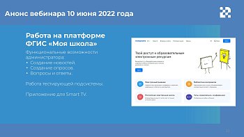 Презентация вебинара будет размещена в новом модуле ФГИС «Моя школа» раздела «Техподдержка».