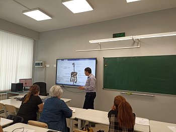 В рамках практикума учителя познакомились с современным лабораторным оборудованием и провели несколько лабораторных опытов с использованием датчиков цифровых лабораторий.