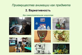 Педагог дополнительного образования Анна Пчелинцева представила панораму проектной и исследовательской работы педагогов и воспитанников творческих студий. Педагоги Любовь Лазарева и Валентина Мещенко пригласили всех участников творческой встречи в увлекательное путешествие «Детская анимация: история, современность и перспективы».