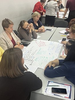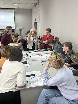 В ходе сессии было организовано тесное взаимодействие между представителями Регионального Ресурсного Центра на базе гимназии №11 «Гармония», преподавателями кафедры и руководителями ММО учителей русского языка и литературы по технологии «Мировое кафе».