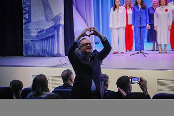 Выступление на Юбилейном концерте НГПУ хора «Поём вместе» прошло с большим успехом. Во время исполнения композиции зрители встали с мест и аплодисментами приветствовали артистов.