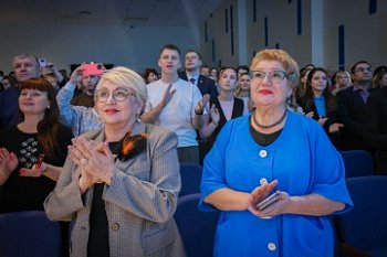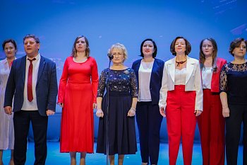 Наш институт в лице хорового коллектива «Поём вместе» в качестве подарка преподнёс концертный номер — песню «Россия».